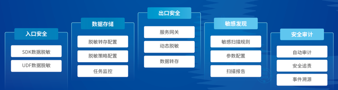 产品核心功能包括入口安全、数据转存、出口安全、敏感发现和安全审计等。