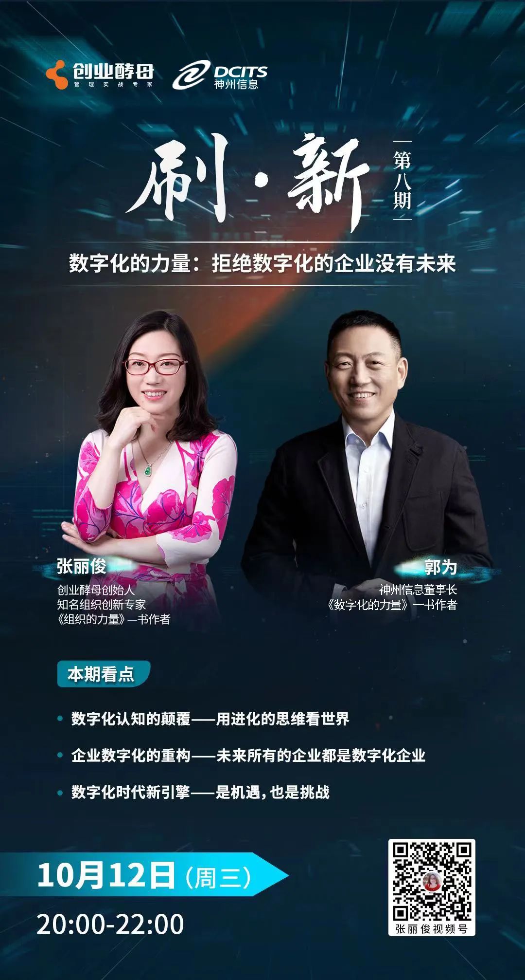 10月12号晚8点,《数字化的力量》一书作者,BB贝博艾弗森官网董事长郭为将做客【刷·新】直播间,与张丽俊老师面对面,探讨数字化对人类认知的颠覆、对企业价值的重构。