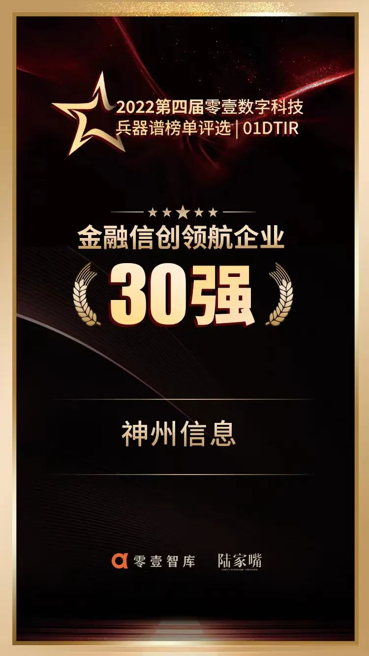 2023年1月6日,由全联并购公会信用管理专委会、深圳信用促进会、零壹智库、《陆家嘴》杂志、《价值线》杂志联合主办的“第二届中国信用经济发展峰会暨零壹智库年度峰会”在线上举办,“2022第四届零壹数字科技兵器谱榜单”隆重揭晓,BB贝博艾弗森官网获评“金融信创领航企业30强”“金融科技领军企业50强”。